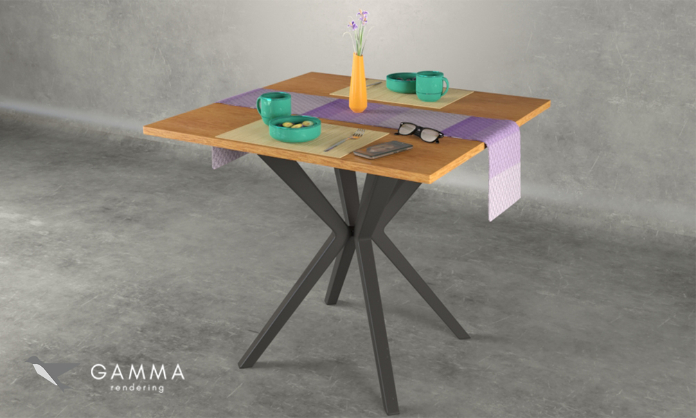 Table set for 3DMax includes accesories (plates, cup, fruits, vase, etc) with textures ready for Vray
